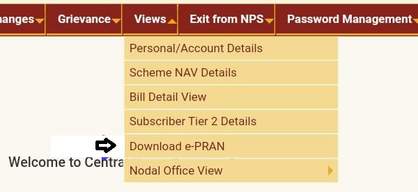 మీ Account లోకి Login అయిన తర్వాత Menu option పైన View button తర్వాత Download e-PRAN Select చేయండి.