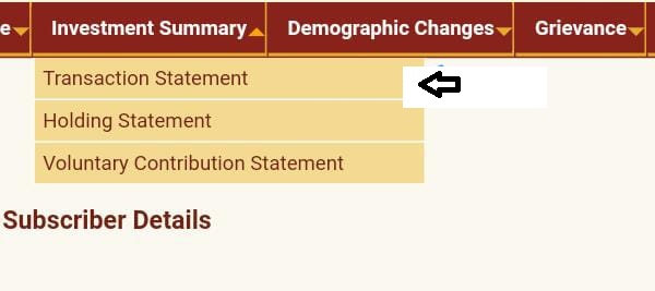 PRAN Account లోకి Login అయిన తర్వాత Menu option పైన Investment Summary select చేసి Transaction Statement Select చేయండి.